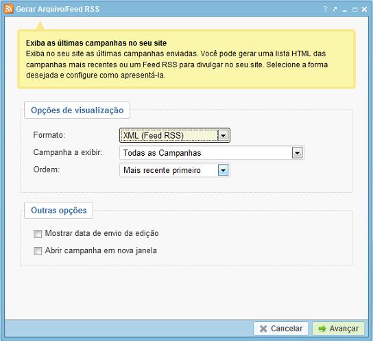 Por último, utilizando o recurso de gerar Arquivo/Feed RSS presente no emailmanager, você pode criar uma lista HTML das suas edições de email marketing enviadas recentemente para que possa disponibilizá-las no seu site. O internauta tem, portanto, fácil acesso às edições previamente enviadas.