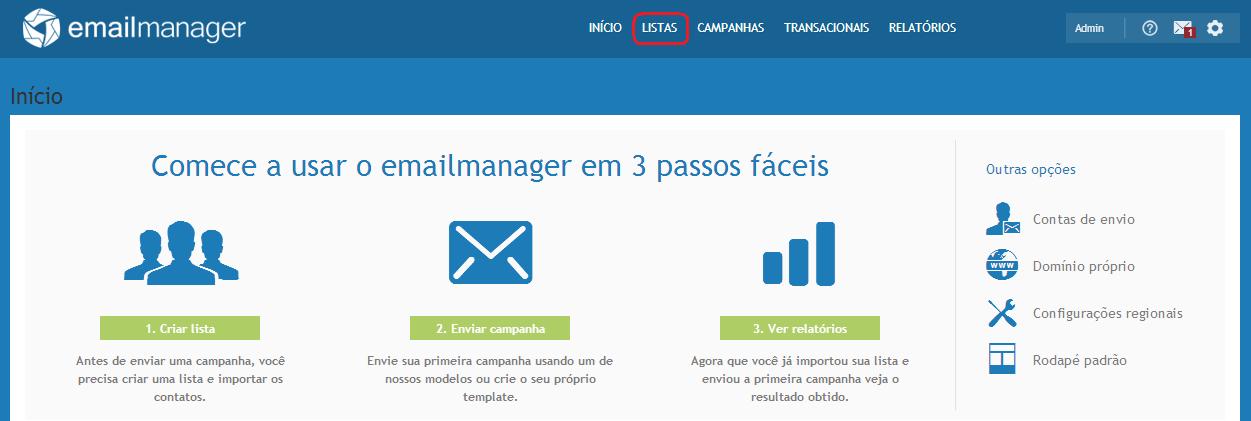 Inicia sesión en la plataforma y haz clic en Listas en la parte superior de la pantalla. Tendrás acceso a una lista de todas las listas registradas en el sistema. No vamos a entrar en detalles sobre los tipos de lista en este post.